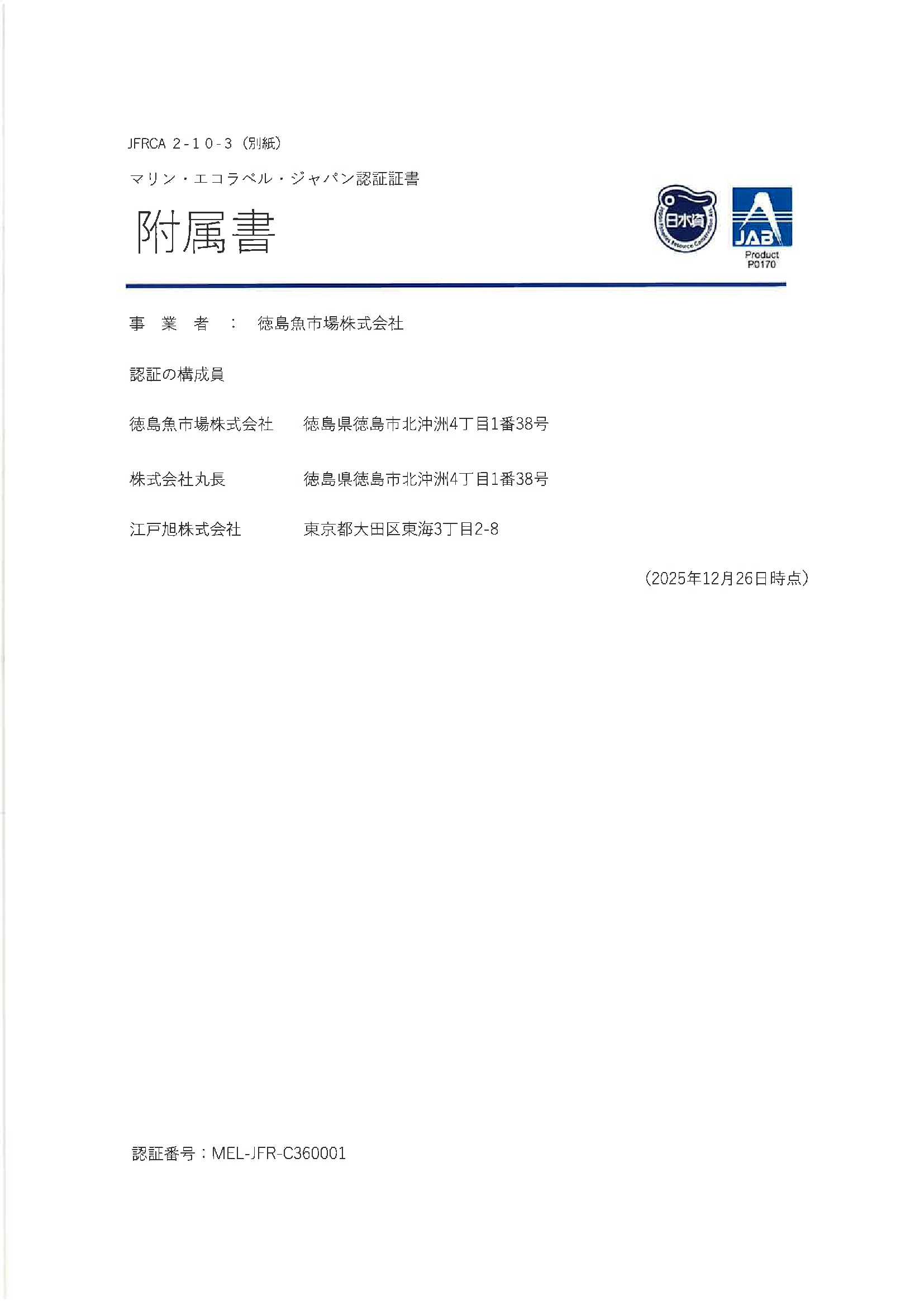 水産エコラベルMEL認証水産物全般の加工流通段階(CoC)認証を取得いたしました。