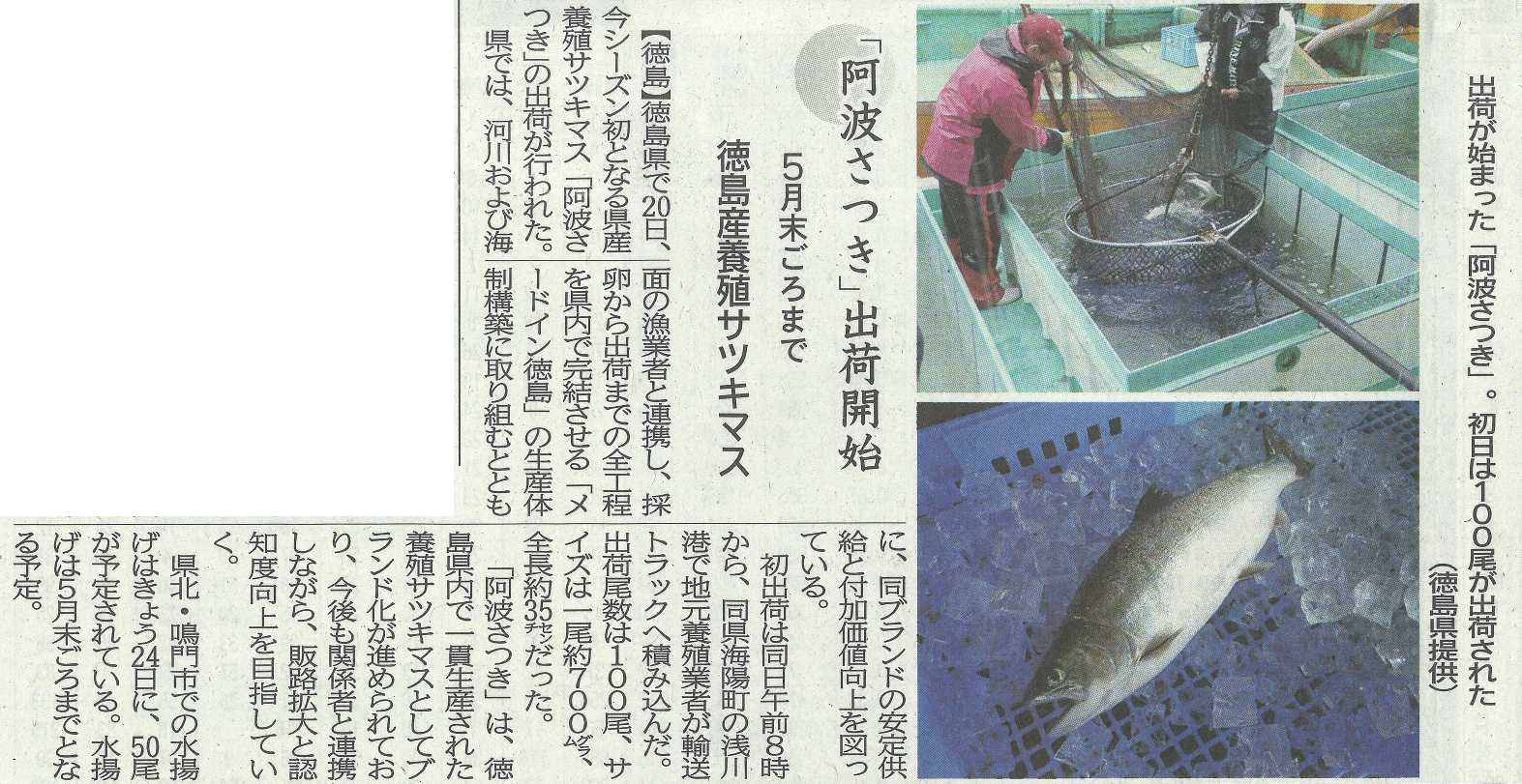 養殖サツキマス 今年初の水揚げ 徳島新聞