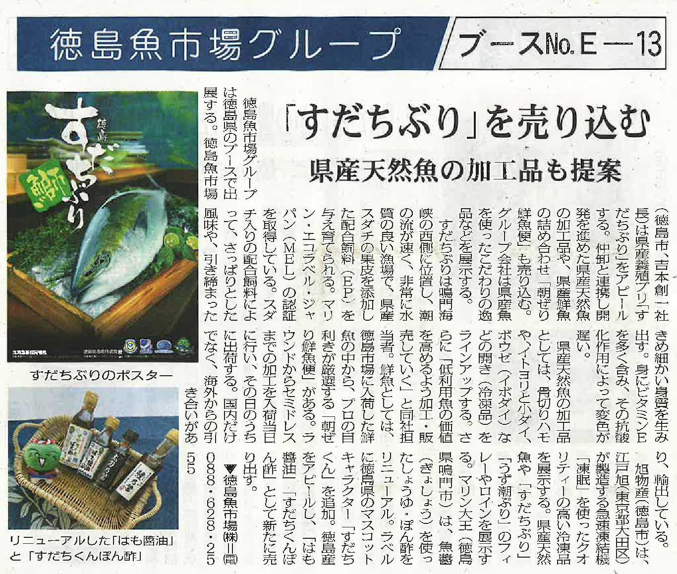徳島魚市場グループが出展する「すだちぶり」や