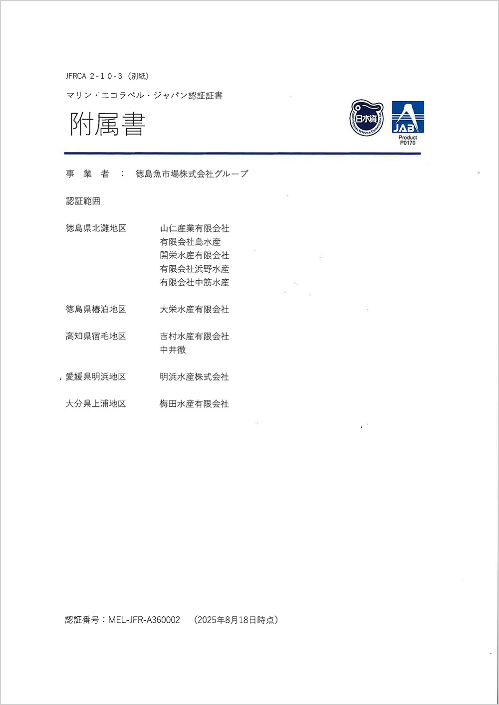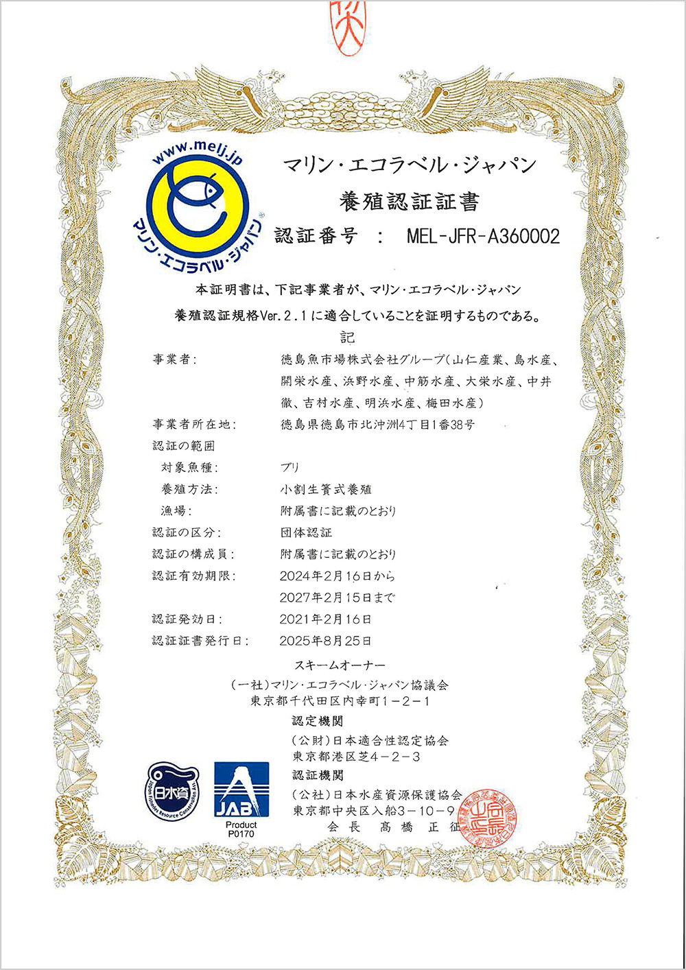 MEL 養殖認証・流通加工段階(CoC)認証を取得